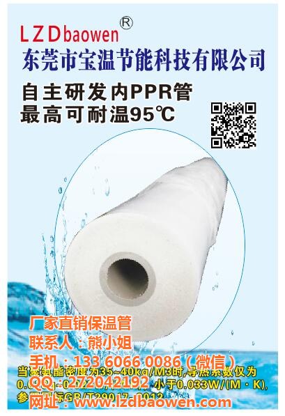 東莞寶溫節(jié)能生產(chǎn)出來的PPR保溫管得到廣大客戶的一致好評,我們寶溫節(jié)能愿與您共同攜手、共同合作,互惠互利,共創(chuàng)管道保溫、節(jié)能美好未來!想具體了解保溫管的可聯(lián)系咨詢電話133 6066 0086
